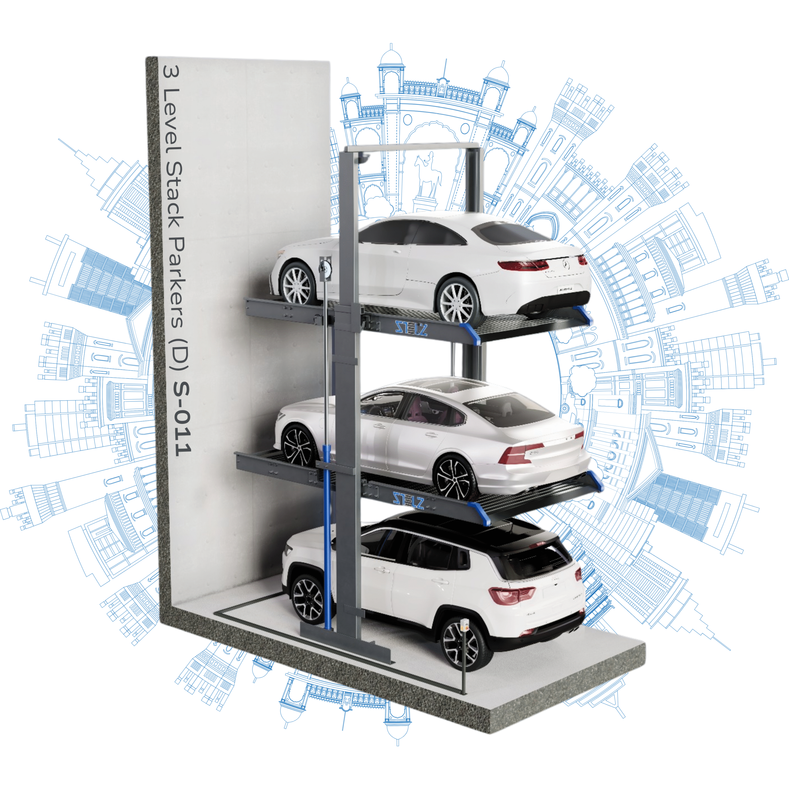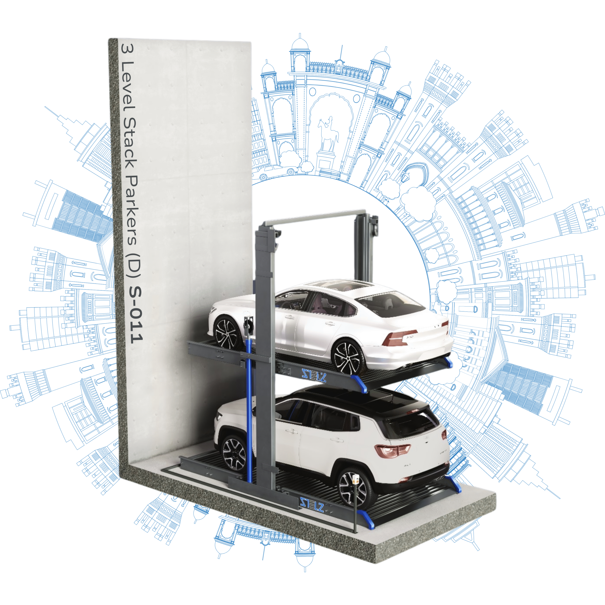 A 3-level stack parking system is a cutting-edge vertical parking solution designed to maximize space efficiency in high-density urban areas. It allows three vehicles to be parked one above the other, using strong mechanical lifts and platforms supported by hydraulic or motor-driven systems. Perfect for commercial complexes, apartments, malls, and office buildings, it multiplies parking capacity without increasing the plot size.